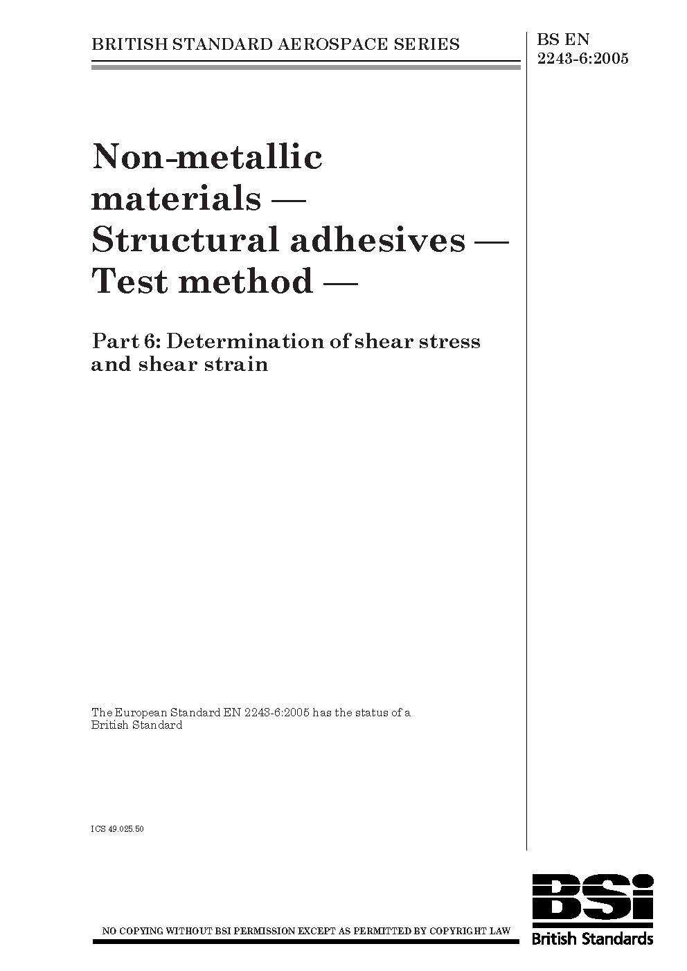Aerospace series. Non-metallic materials. Structural adhesives. Test method Determination of shear stress and strain
