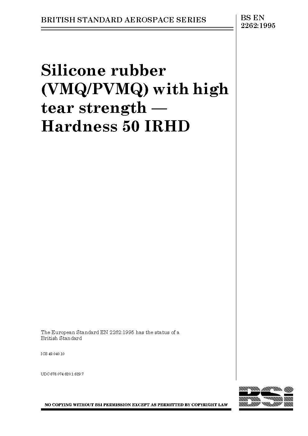 Performance testing;Tear tests;Environmental testing;Aircraft components;Silicones;Physical properties of materials;Air transport engineering;Hardness;Synthetic rubber;Designations