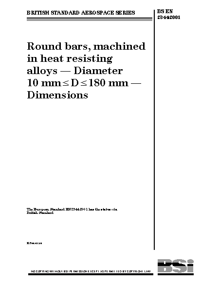 Aerospace series. Round bars, machined in heat resisting alloys. Diameter 10 mm < D < 180 mm. Dimensions