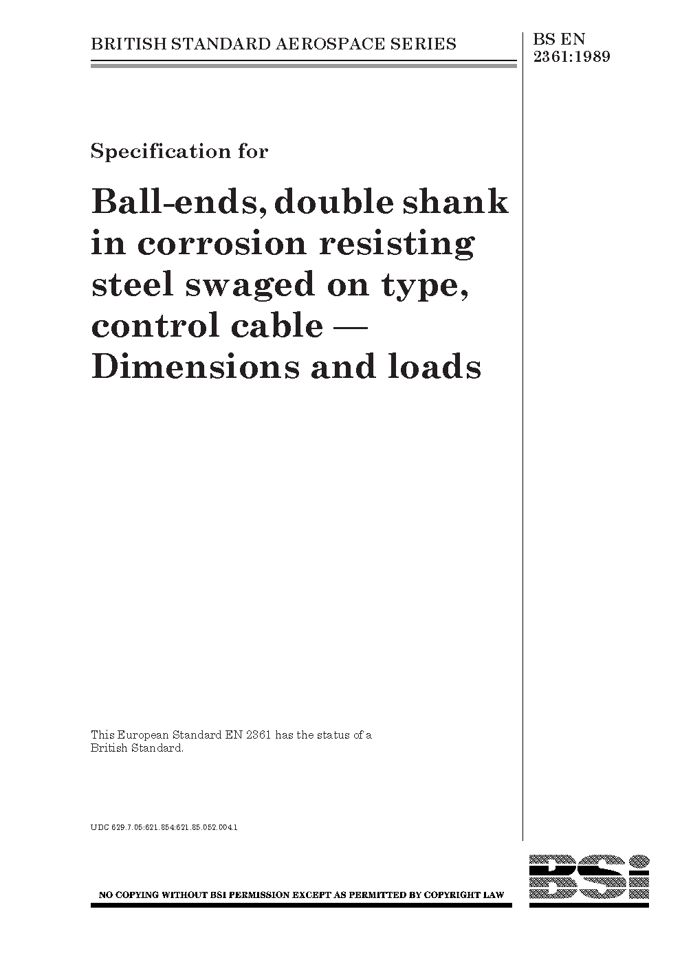 Designations;Terminal fittings;Diameter;Breaking load;Flight control;Ball-ended linkages;Cable drives;Terminal fittings (ropes);Aircraft controls;Steels;Control devices;Vehicle controls;Mass;Marking;Wire ropes;Air transport engineering;Aircraft components;Dimensions;Corrosion-resistant steels;Roughness (surface)