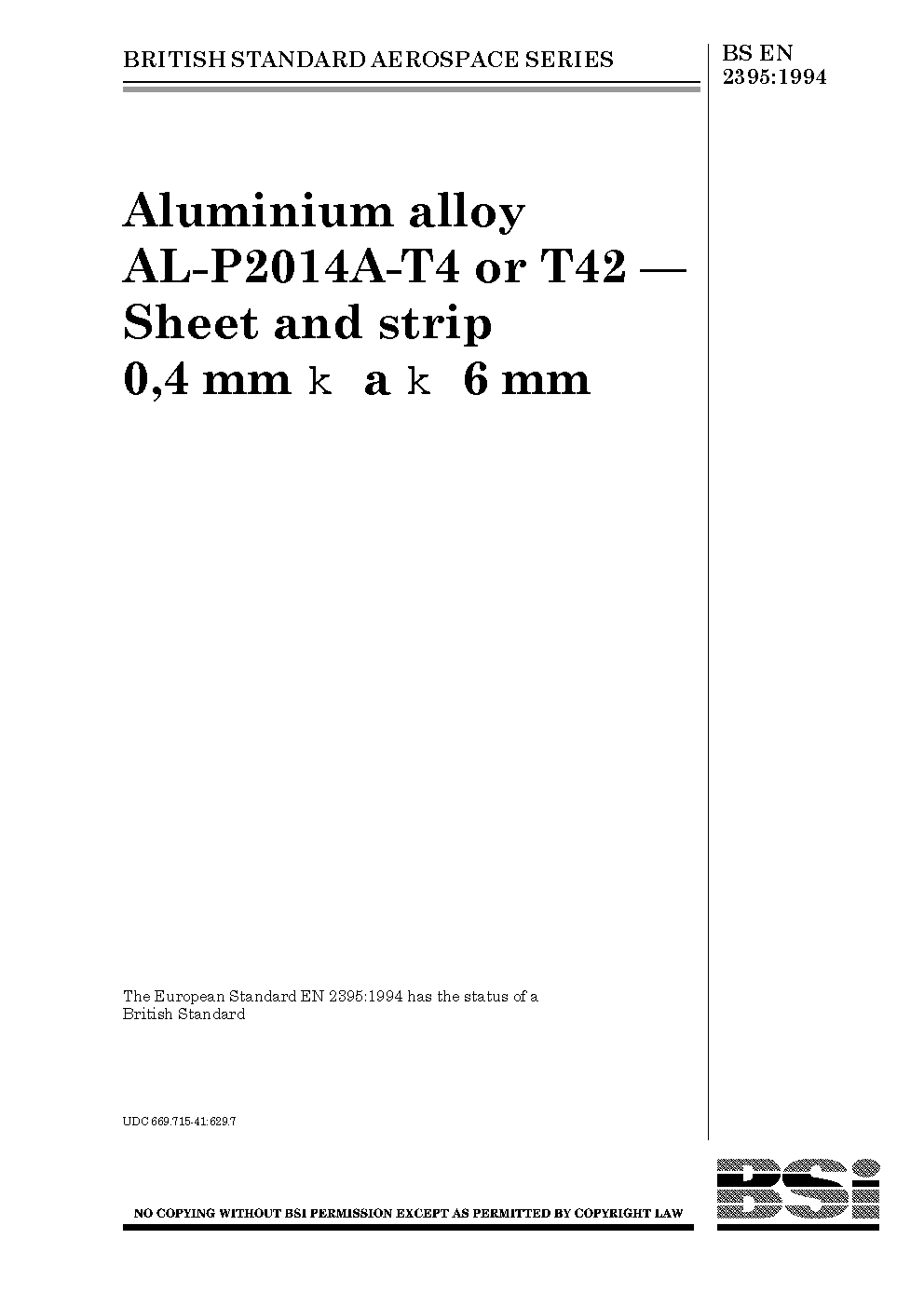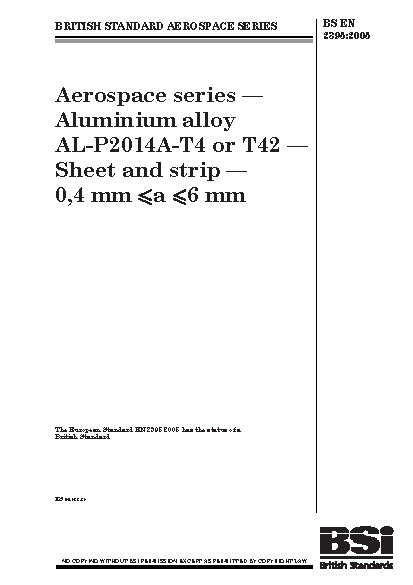 Aerospace series. Aluminium alloy AL-P2014A-T4 or T42. Sheet and strip. 0,4 mm =a =6 mm