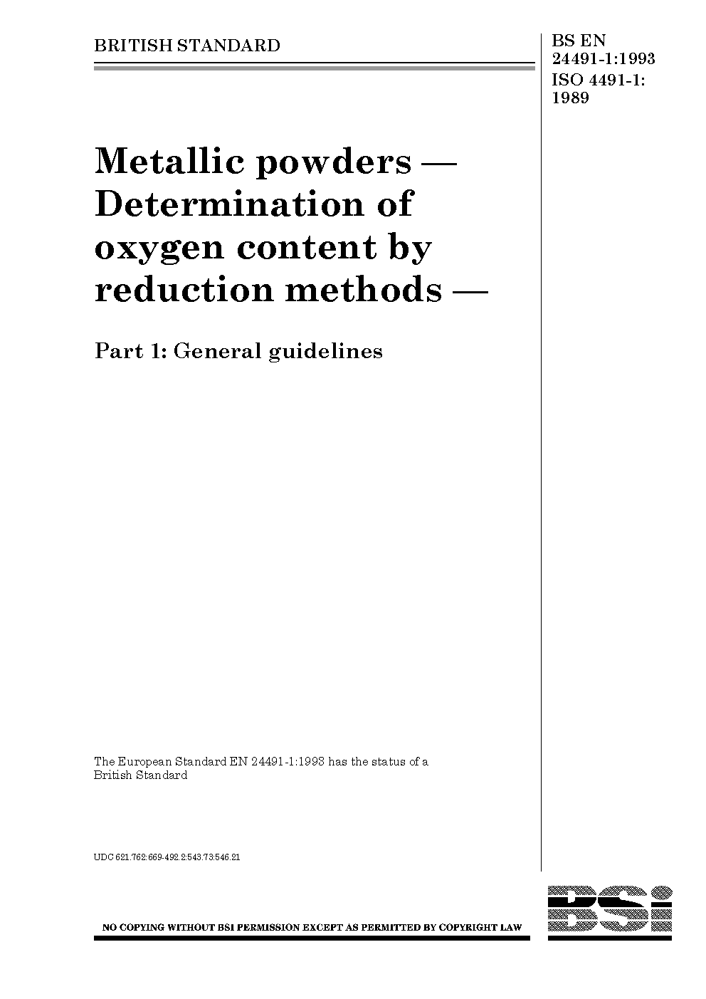 Metallic powders. Determination of oxygen content by reduction methods General guidelines