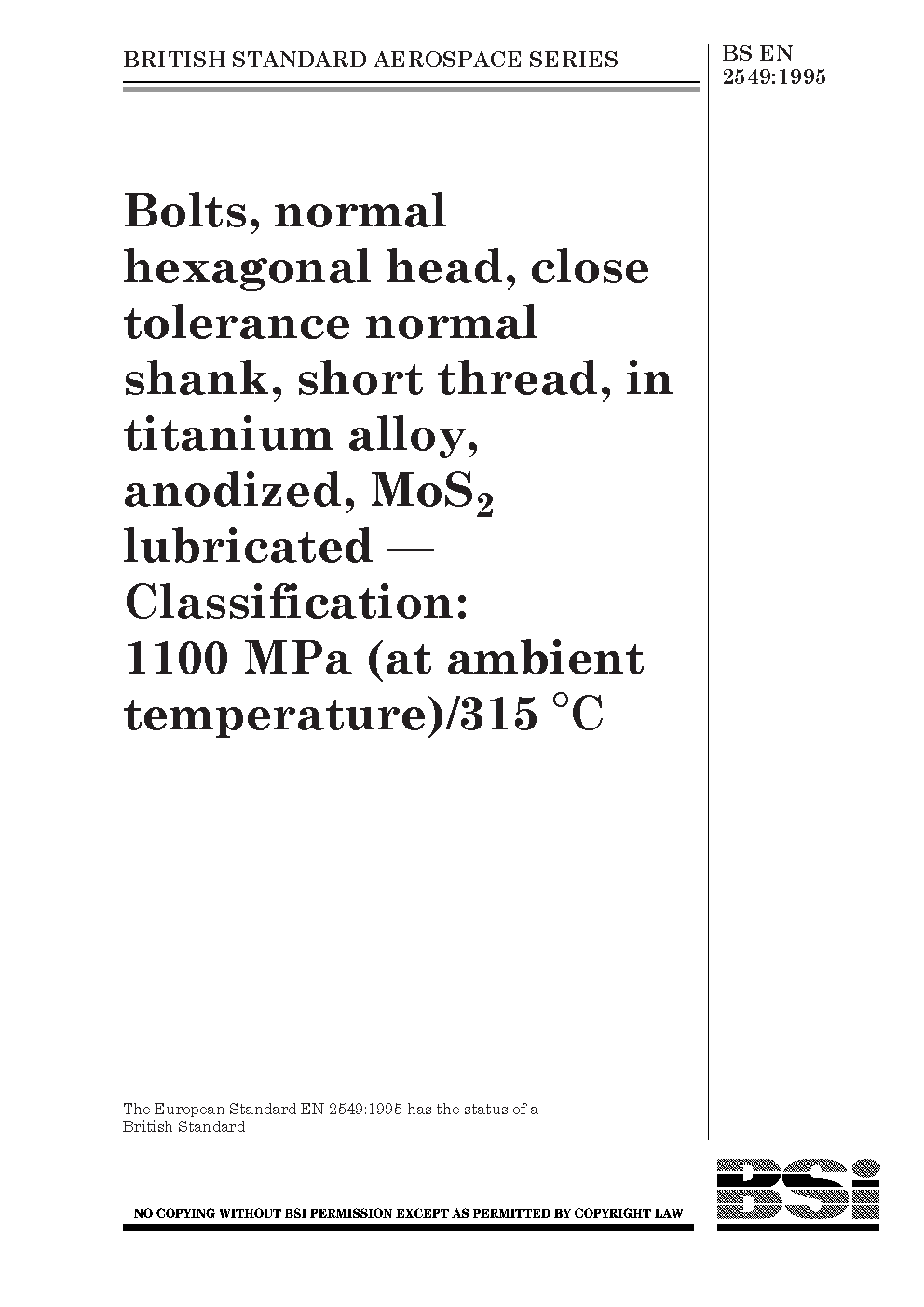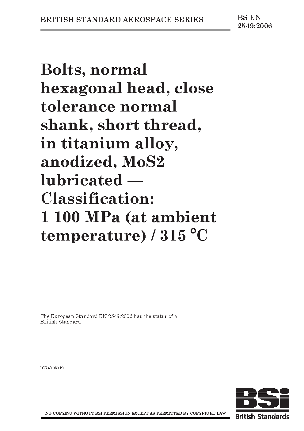 Mass;Designations;Sulfides;Lubrication;Hexagonal-head fasteners;Aircraft components;Fasteners;Surface treatment;Heat-resistant materials;Threaded fasteners;Molybdenum inorganic compounds;Bolts;Titanium alloys;Marking;External-thread fasteners;Titanium;Anodizing;Dimensions