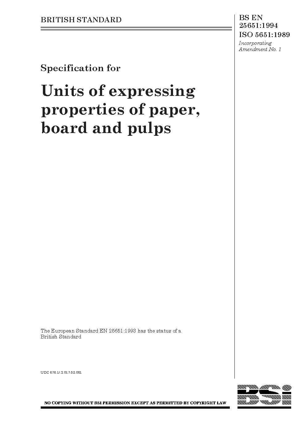 Specification for units for expressing properties of paper, board and pulps