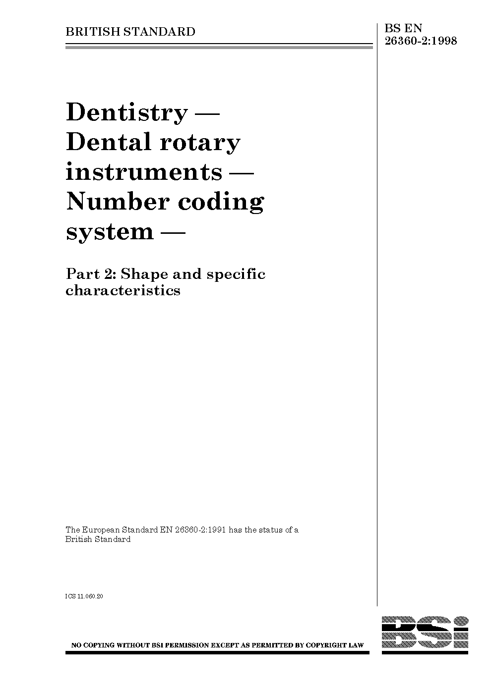 Dentistry. Dental rotary instruments. Number coding system Shape and specific characteristics