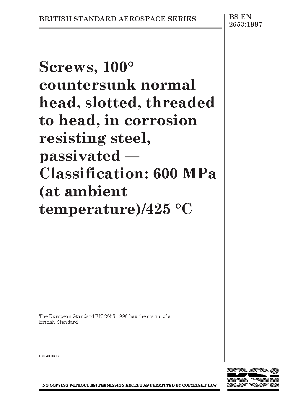 Threaded fasteners;External-thread fasteners;Screws (bolts);Marking;Dimensions;Aircraft components;Corrosion-resistant steels;Designations;Countersunk fasteners;Passivation;Mass;Slotted-head fasteners;Fasteners;Roughness (surface);Steels;Heads (fasteners)
