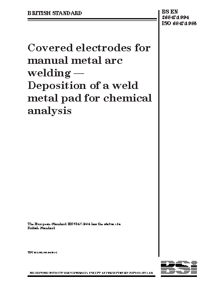 Covered electrodes for manual metal arc welding. Deposition of a weld metal pad for chemical analysis