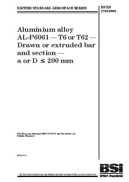 Aerospace series. Aluminium alloy. AL-P6061. T6 or T62. Drawn or extruded bar and section. a or D = 200 mm