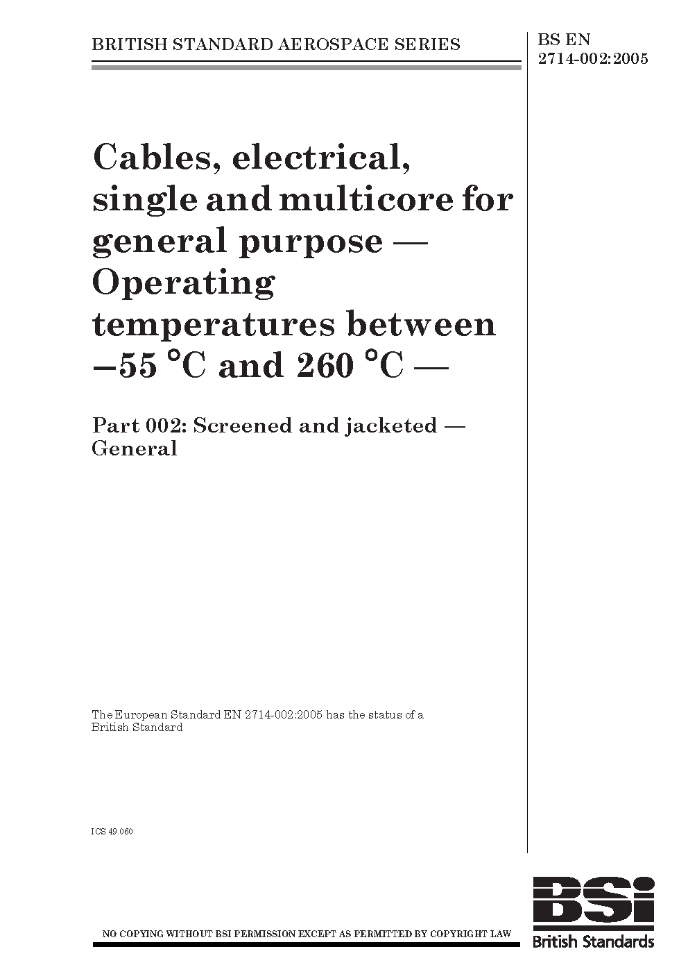 Aerospace series. Cables, electrical, single and multicore for general purpose. Operating temperatures between -55°C 260°C Screened jacketed. General