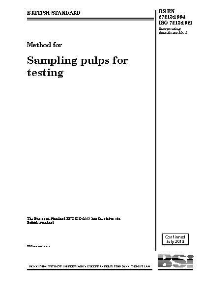 Paper pulp;Bales;Sampling methods