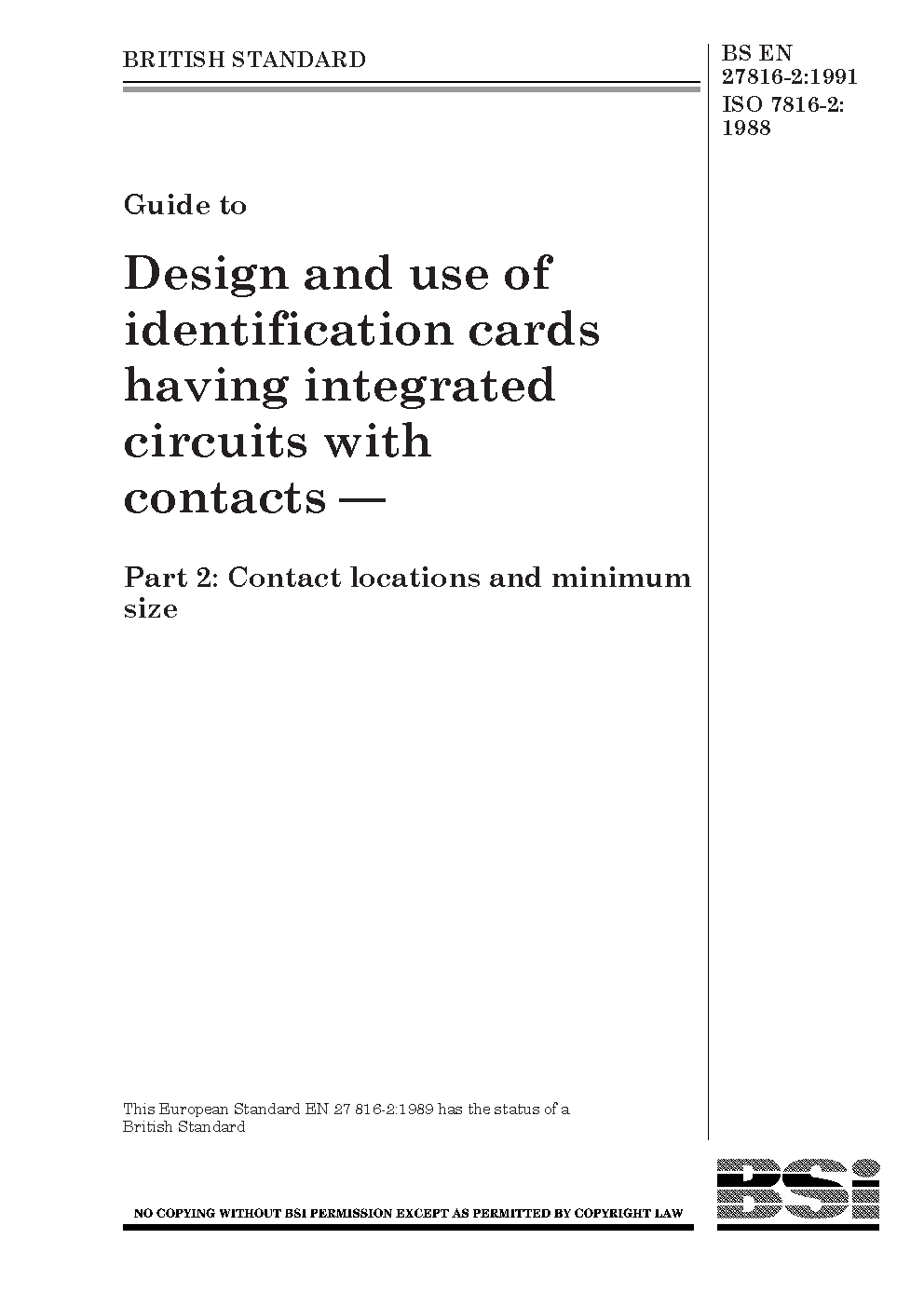 Guide to design and use of identification cards having integrated circuits with contacts Contact locations minimum size
