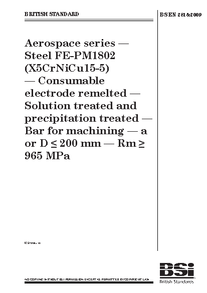 Impact strength;Solution heat treatment;Air transport engineering;Tensile strength;Crystal structure;Grain size;Alloy steels;Consumable electrodes;Hardness;Bars (materials);Heat treatment;Dimensions;Steels;Remelting;Proof stress;Chemical composition;Elongation;Precipitation hardening