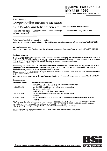 Complete, filled transport packages. Methods for determination of resistance to sinusoidal variable frequency vibration