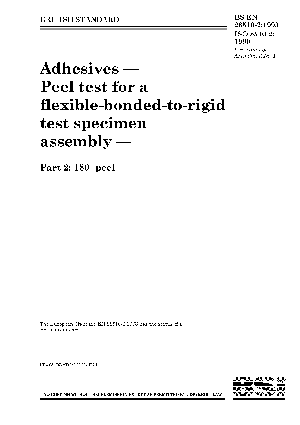 Adhesives. Peel test for a flexible-bonded-to-rigid specimen assembly 180° peel