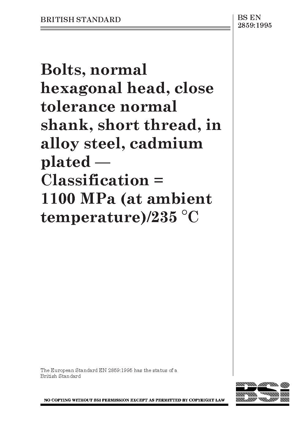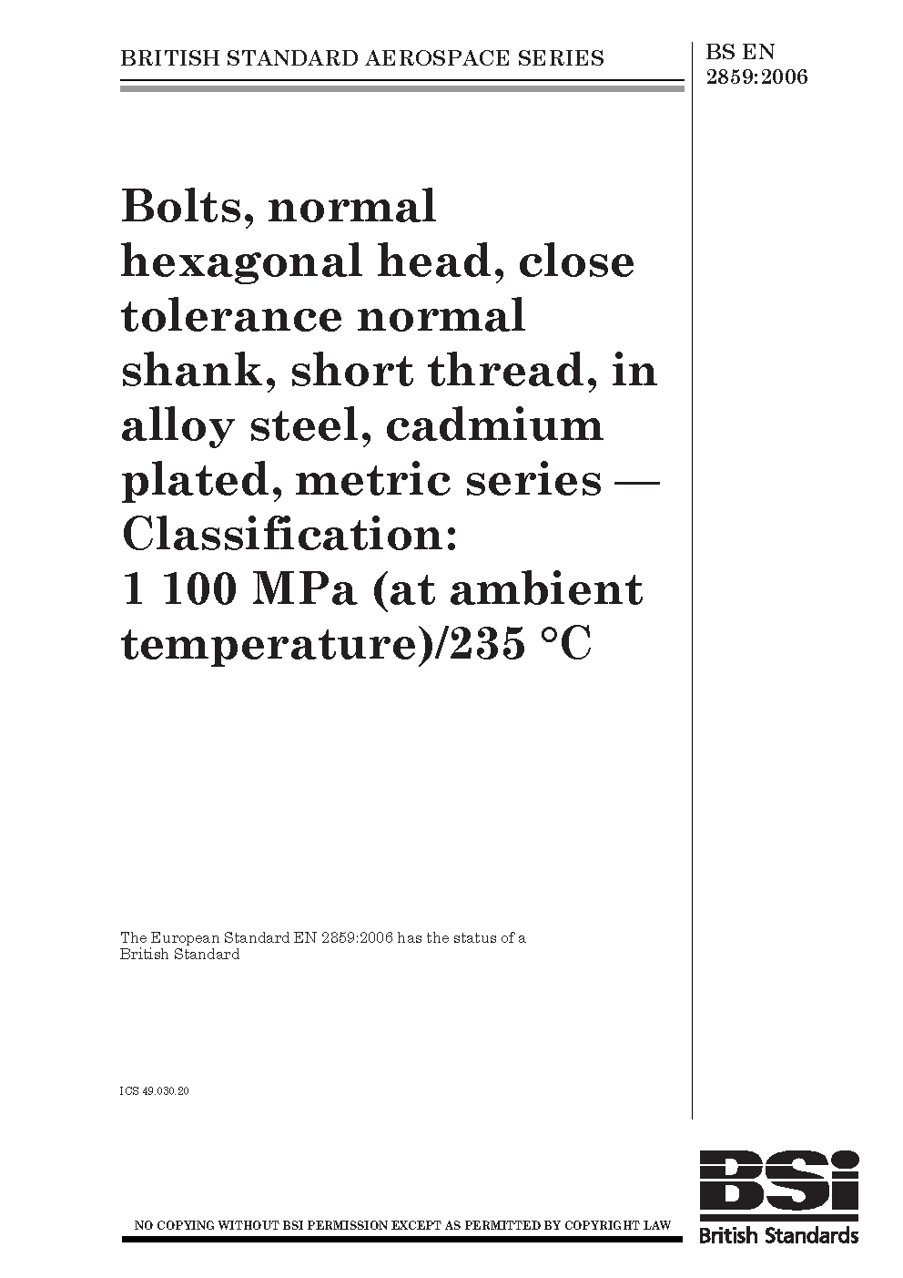 Surface treatment;Marking;Dimensional tolerances;Tensile strength;Metal coatings;Steels;Threaded fasteners;Length;Aircraft components;Cadmium;Fasteners;Alloy steels;Hexagonal-head fasteners;Holes;Dimensions;Bolts;Finishes;External-thread fasteners;Designations