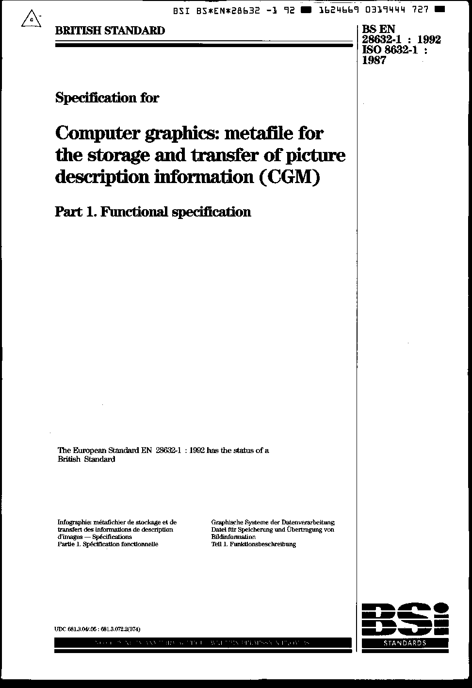 Specification for computer graphics: metafile the storage and transfer of picture description information (CGM). Functional specification