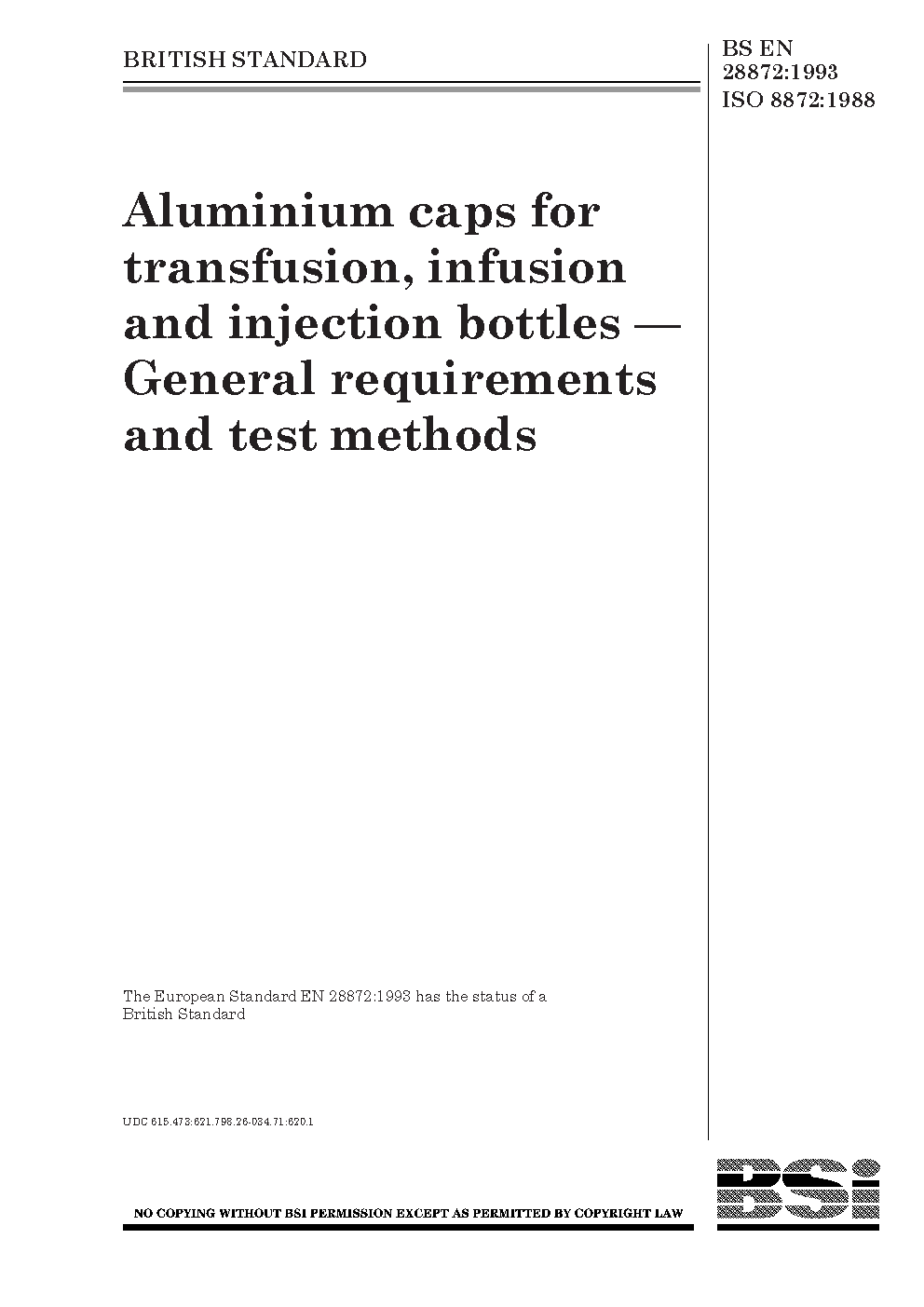 Aluminium caps for transfusion, infusion and injection bottles. General requirements and test methods