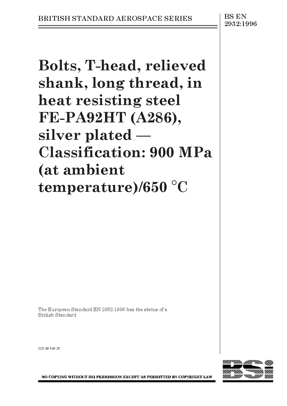Preferred sizes;Bolts;Thickness;Threaded fasteners;External-thread fasteners;Length;Metal coatings;Silver;Mass;Marking;Dimensional tolerances;Designations;Aircraft components;Heads (fasteners);Triangular-head fasteners;Surface treatment;Threads;Fasteners;Dimensions;Heat-resistant materials;Temperature;Steels