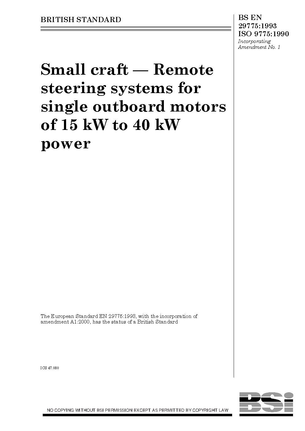 Small craft. Remote steering systems for single outboard motors of 15 kW to 40 kW power
