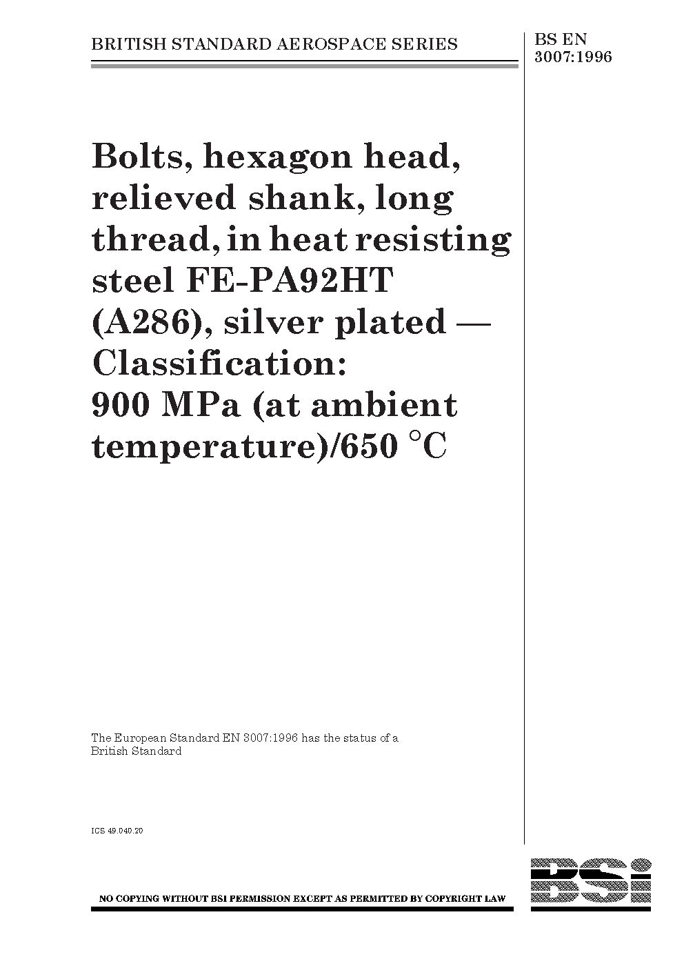 Heads (fasteners);Marking;Aircraft components;Surface treatment;Heat-resistant materials;Silver;Threads;Metal coatings;Weight (mass);Steels;Bolts;Preferred sizes;Hexagonal-head fasteners;External-thread fasteners;Temperature;Threaded fasteners;Designations;Fasteners;Dimensions;Shafts (fasteners)