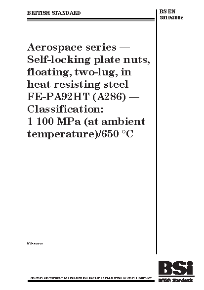 Aerospace series. Self-locking plate nuts, floating, two-lug, in heat resisting steel FE-PA92HT (A286). Classification: 1100 MPa (at ambient temperature)/650 °C