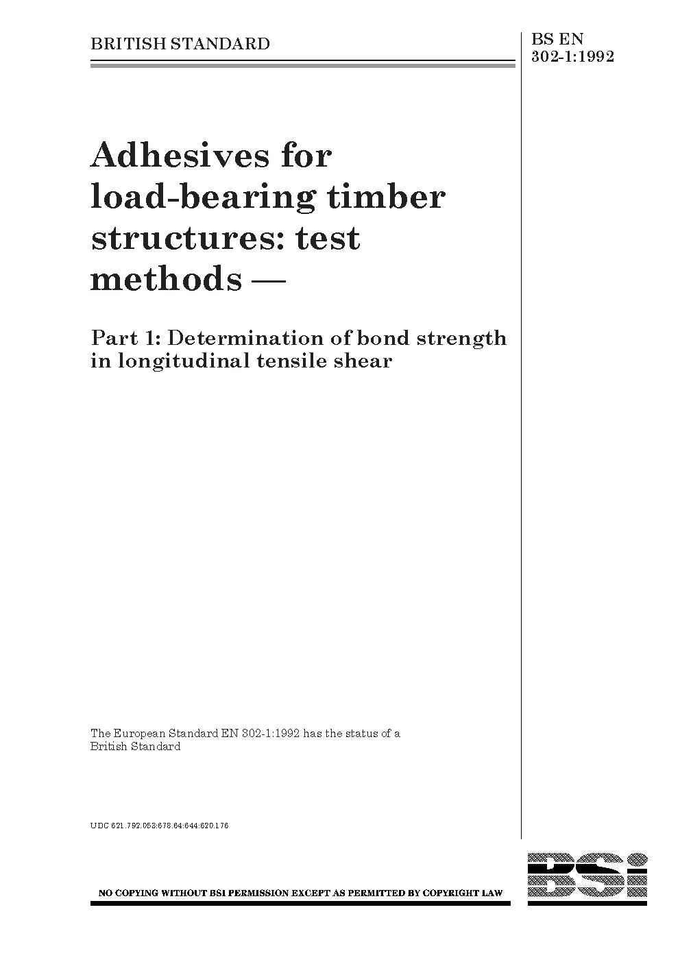 Adhesives for load-bearing timber structures. Test methods Determination of longitudinal tensile shear strength