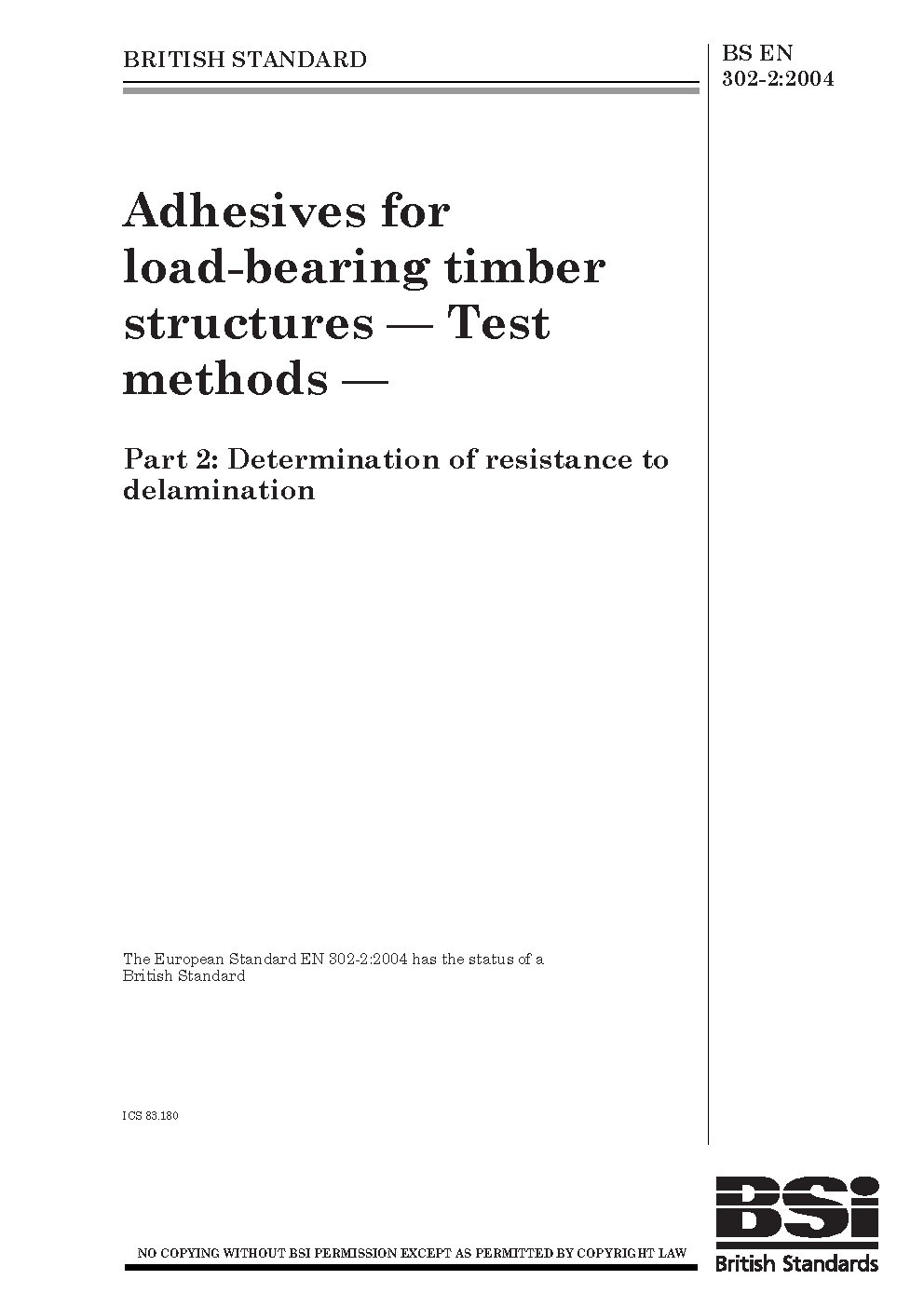 Adhesives for load-bearing timber structures. Test methods Determination of resistance to delamination