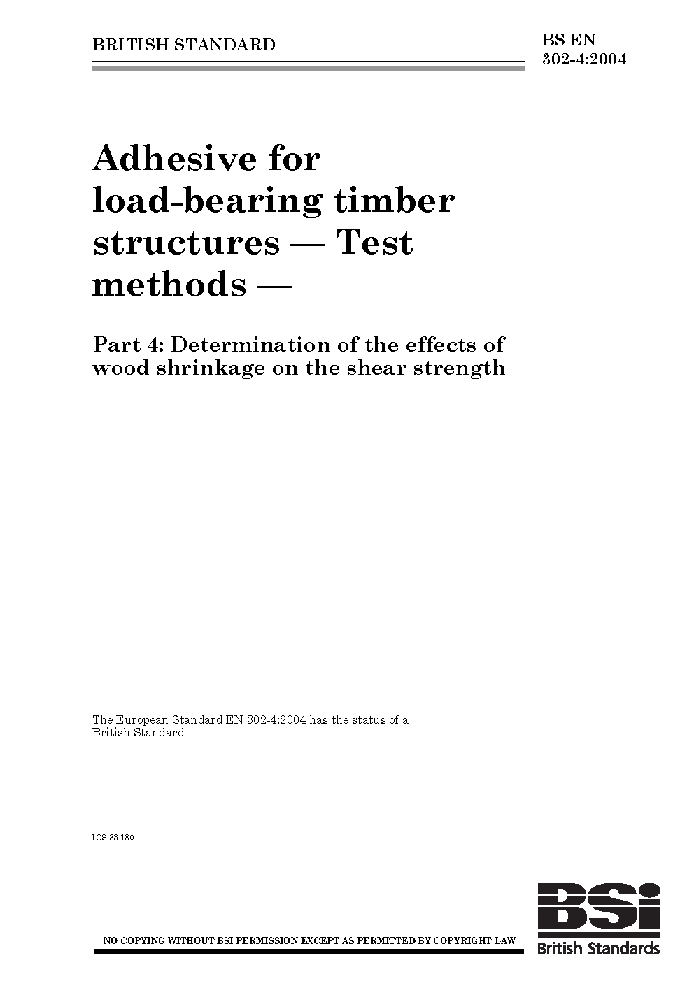 Adhesives for load-bearing timber structures. Test methods Determination of the effects wood shrinkage on shear strength