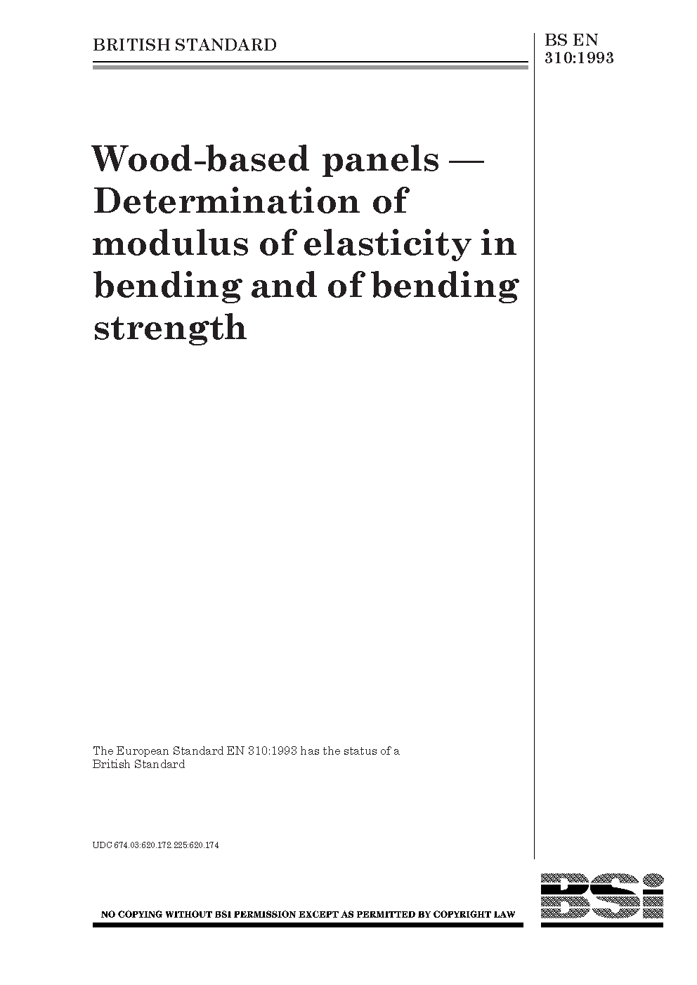 Wood-based panels. Determination of modulus of elasticity in bending and of bending strength