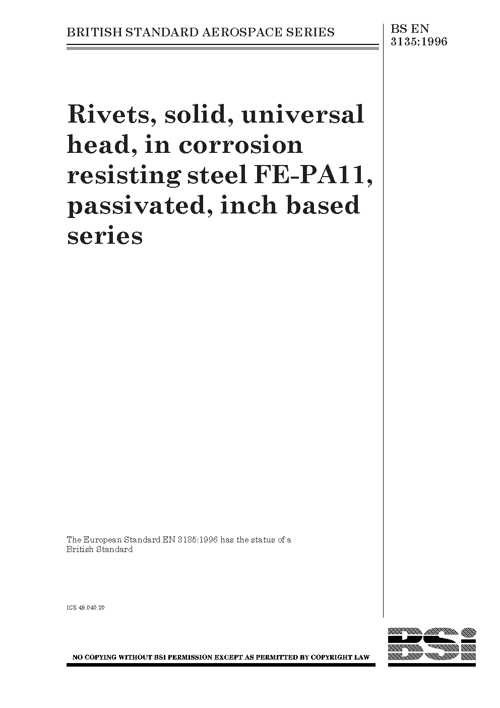 Solid (shape);Round-head fasteners;Mass;Marking;Designations;Imperial system;Dimensional tolerances;Dimensions;Fasteners;Steels;Length;Passivation;Diameter;Rivets;Corrosion-resistant steels;Threadless fasteners;Full rivets;Aircraft components