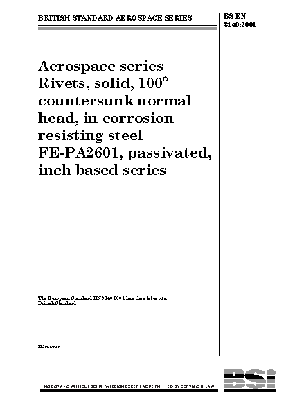 Passivation;Imperial system;Fasteners;Countersunk fasteners;Corrosion-resistant steels;Solid (shape);Aircraft components;Dimensions;Rivets;Threadless fasteners