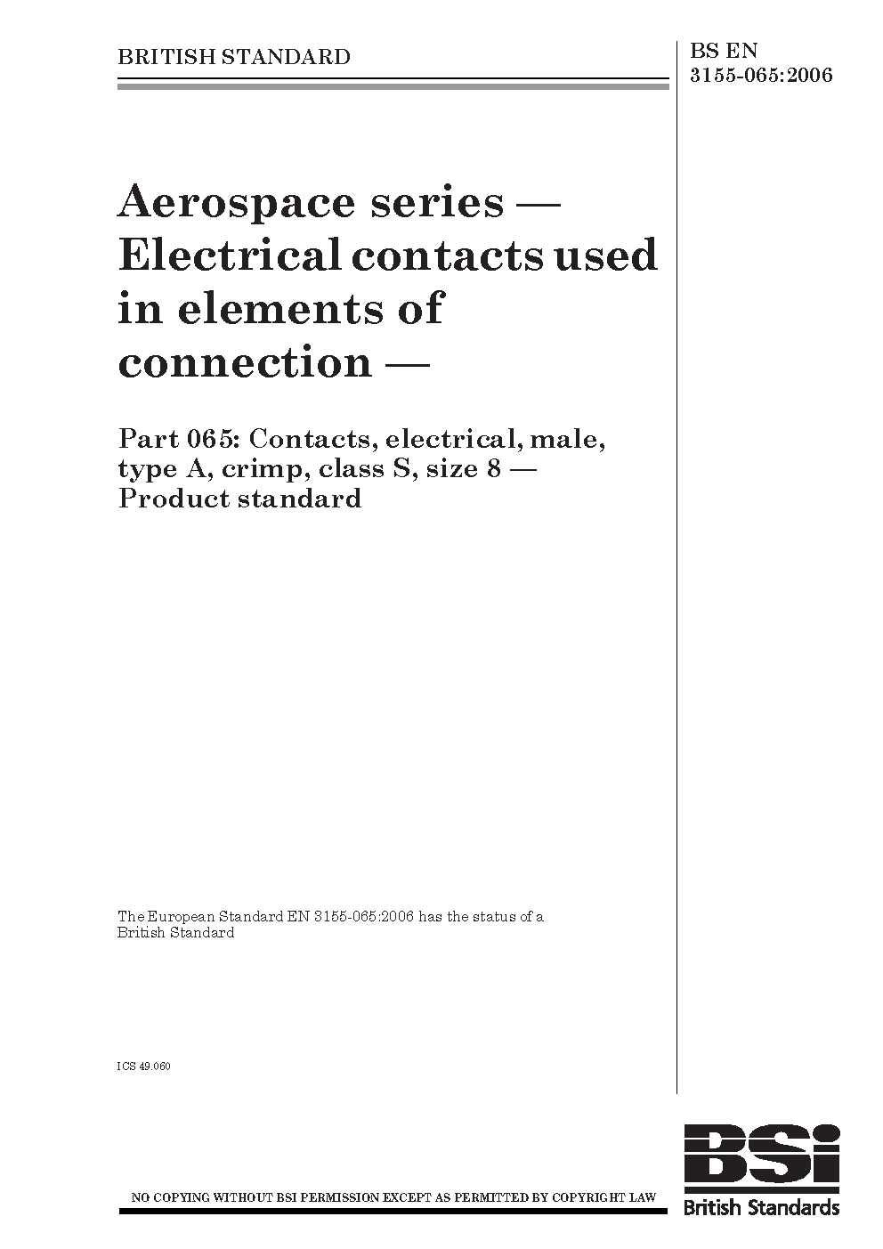 Aerospace series. Electrical contacts used in elements of connection Contacts, electrical, male, type A, crimp, class S, size 8. Product standard