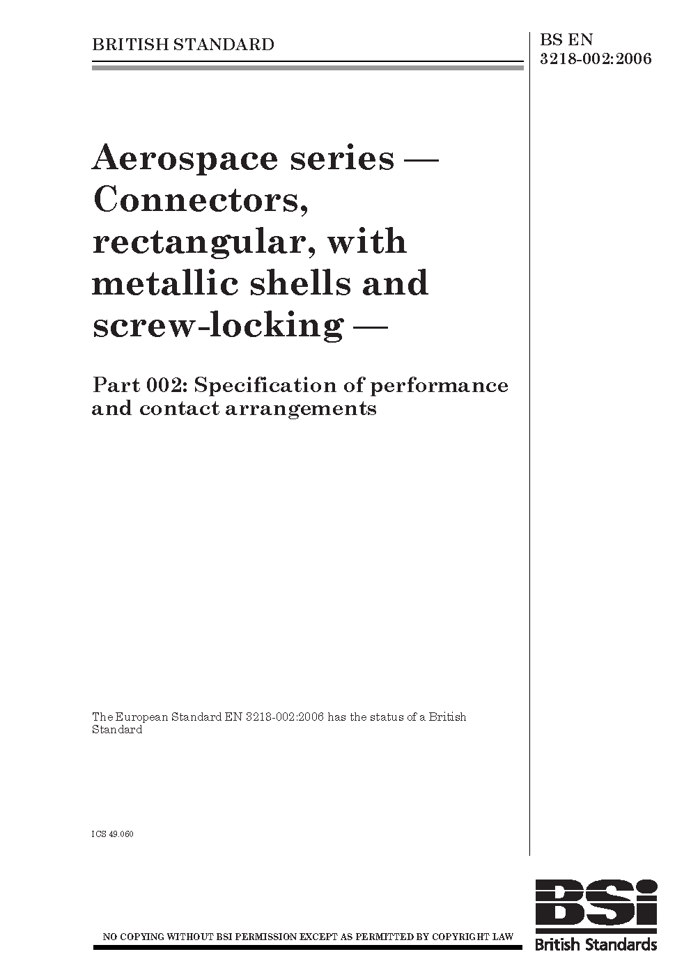 Aerospace series. Connectors, rectangular, with metallic shells and screw-locking Specification of performance contact arrangements