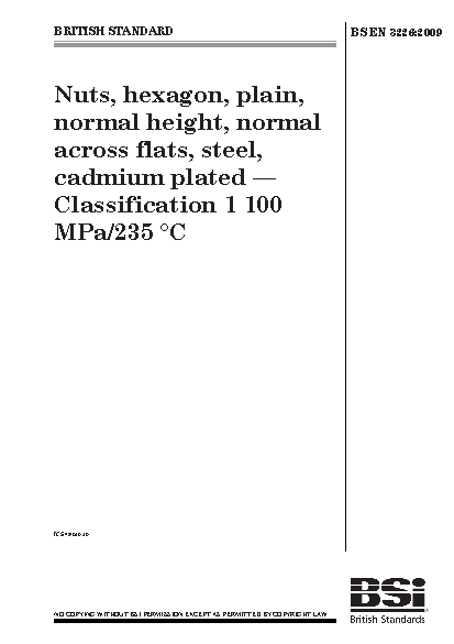 Aerospace series. Nuts, hexagon, plain, normal height, normal across flats, steel, cadmium plated. Classification: 1100 MPa/235°C