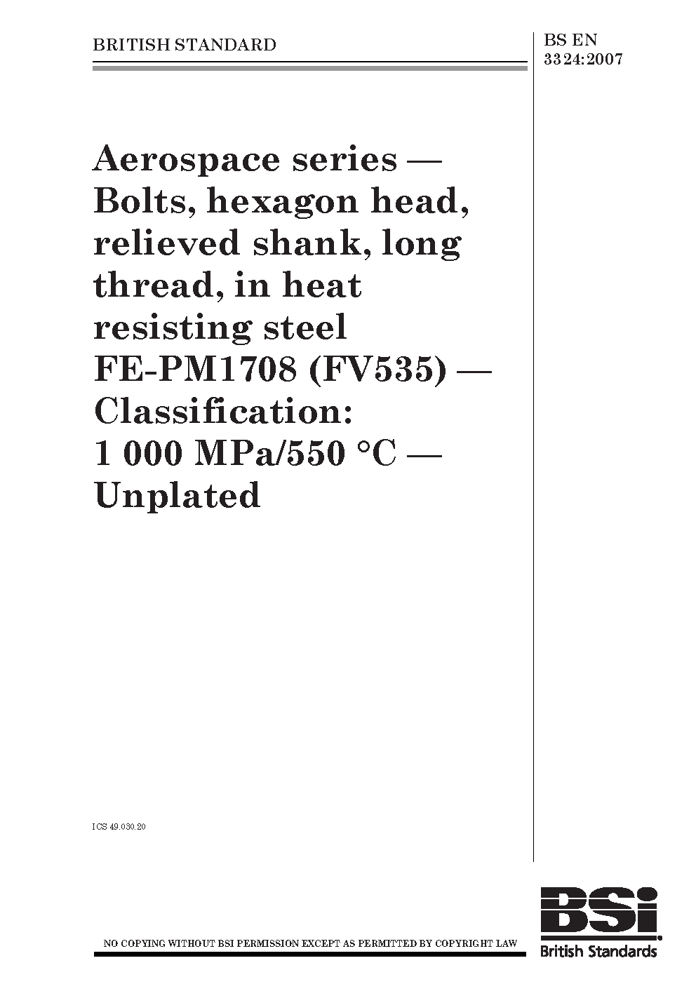 Heat-resistant materials;Aircraft components;Fasteners;Hexagonal-head fasteners;Bolts;Dimensions;Mass;Designations;Marking;Threaded fasteners;Threads;Steels