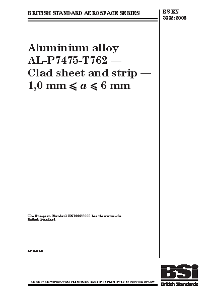 Aerospace series. Aluminium alloy AL-P7475-T762. Clad sheet and strip. 1,0 mm = a = 6 mm