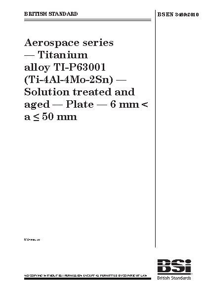 Aerospace series. Titanium alloy TI-P63001 (Ti-4Al-4Mo-2Sn). Solution treated and aged. Plate. 6 mm < a = 50 mm