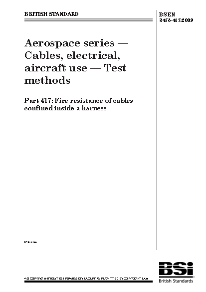 Aerospace series. Cables, electrical, aircraft use. Test methods Fire resistance of cables confined inside a harness