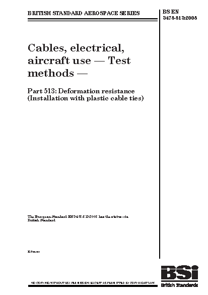 Aerospace series. Cables, electrical, aircraft use. Test methods Deformation resistance (installation with plastic cable ties)