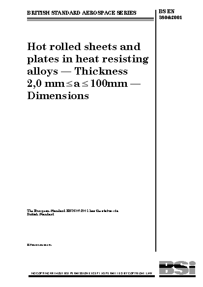 Aerospace series. Hot rolled sheets and plates in heat resisting alloys. Thickness 2,0 mm = a = 100 mm. Dimensions