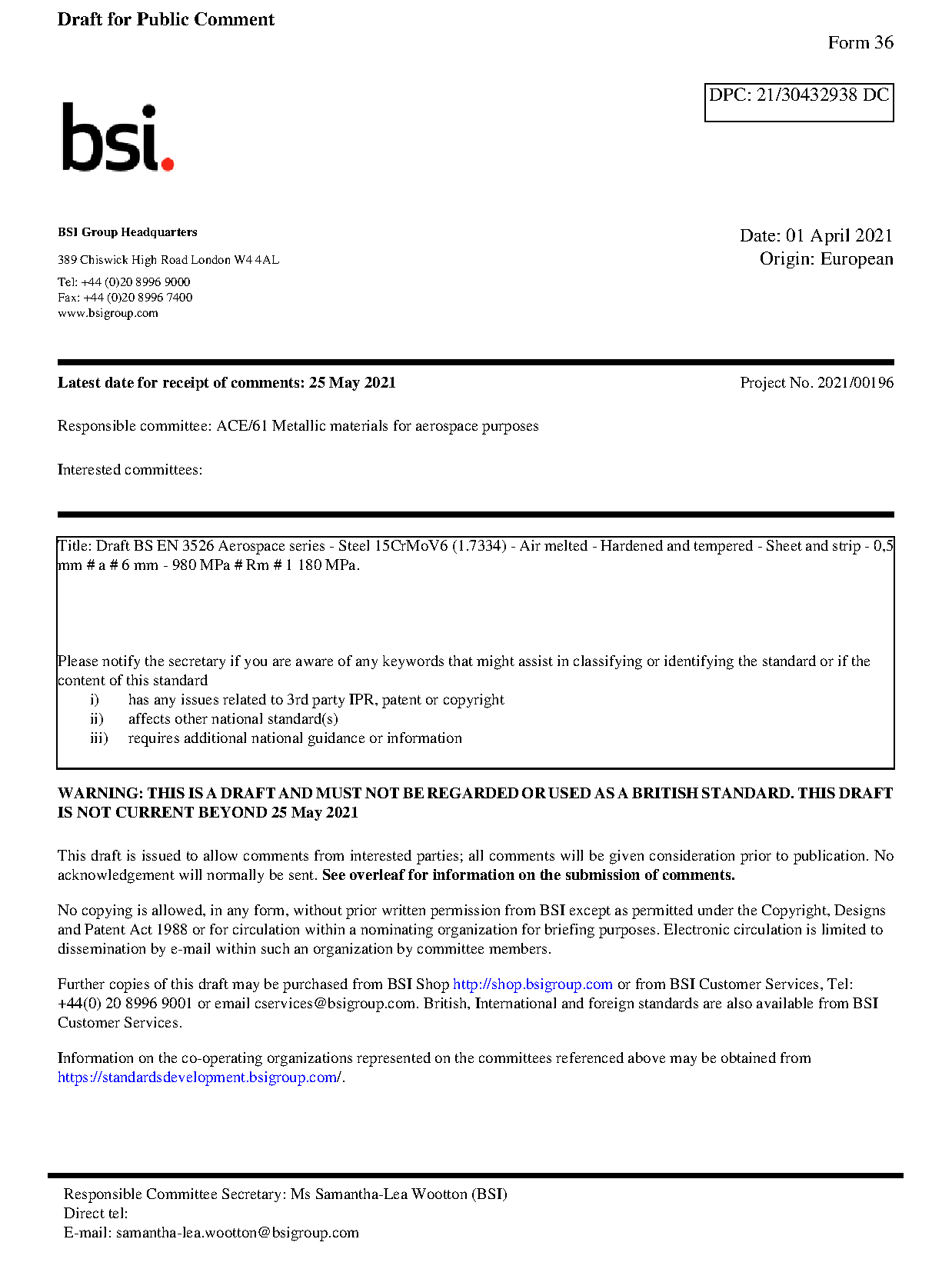 Sheet materials;Proof stress;Air transport engineering;Hardness;Elongation;Strips;Alloy steels;Tempering;Steels;Hardening;Defects;Heat treatment;Dimensions;Air;Chemical composition;Melting;Bending;Tensile strength