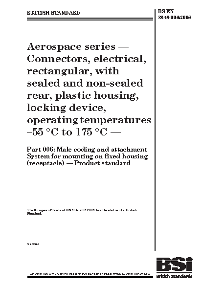 Aerospace series. Connectors, electrical, rectangular, with sealed and non-sealed rear, plastic housing, locking device, operating temperatures -55°C to 175°C Male coding attachment system for fitment on fixed housing (receptacle). Product standard
