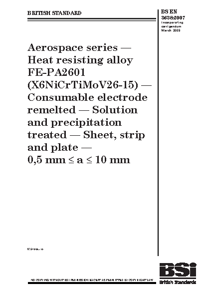 Aerospace series. Heat-resisting alloy X6NiCrTiMoV26-15 (1.4980). Consumable electrode remelted. Solution treated and precipitation treated. Sheets, strips and plates. 0,5 = a = 10 mm