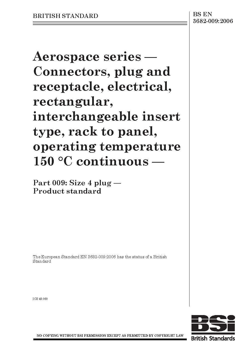 Aerospace series. Connectors, plug and receptacle, electrical, rectangular, interchangeable insert type, rack to panel, operating temperature 150°C continuous Size 4 plug. Product standard