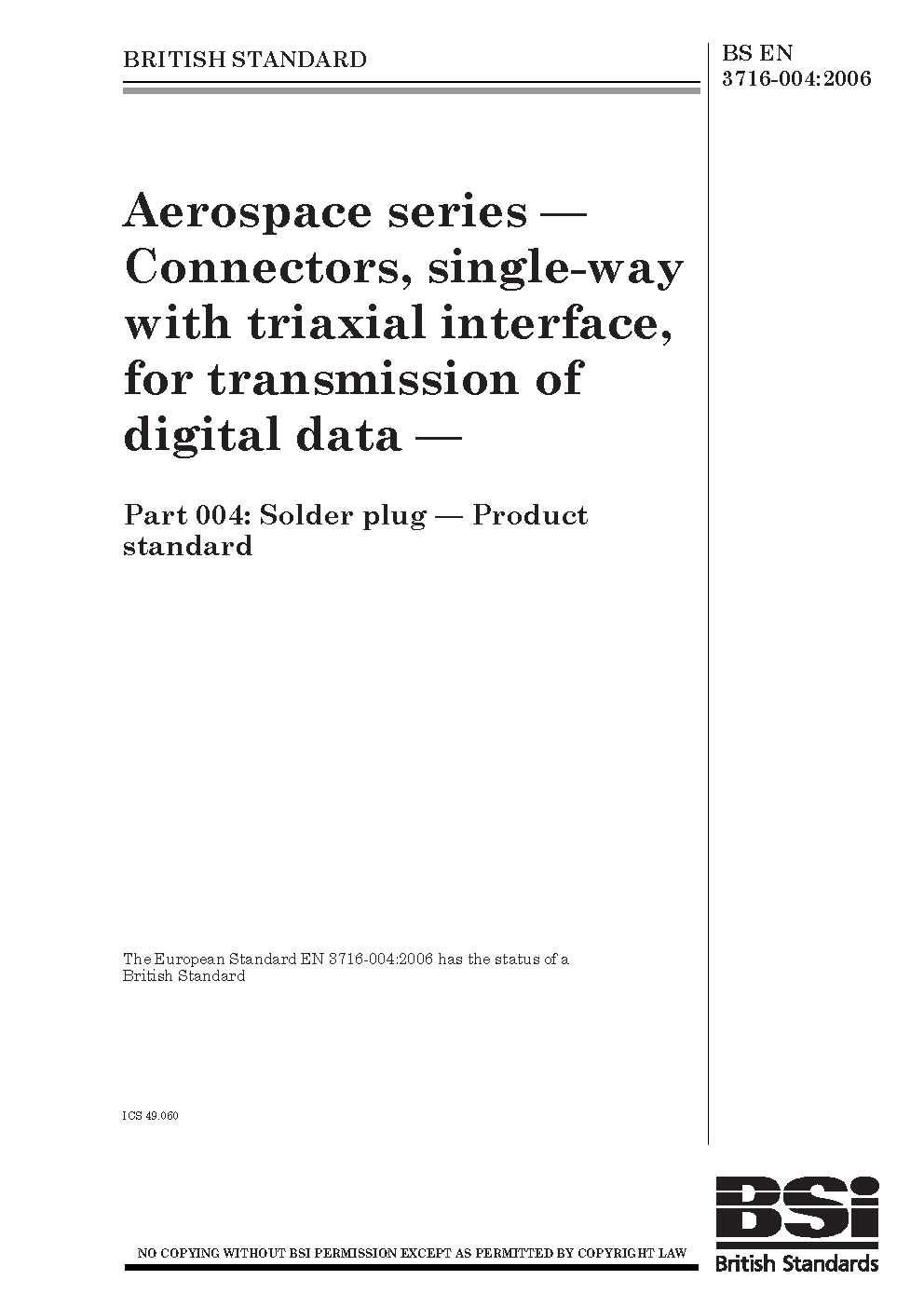 Aerospace series. Connectors, single-way with triaxial interface for transmission of digital data Solder plug and terminator. Product standard
