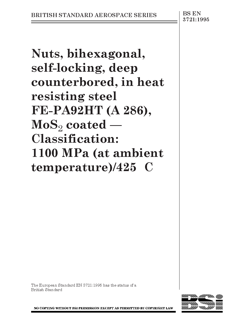 Molybdenum inorganic compounds;Aircraft components;Threaded fasteners;Designations;Locknuts;Dimensions;Heat-resistant materials;Fasteners;Preferred sizes;Steels;Nuts;Coatings;Temperature;Mass;Bihexagonal-head fasteners