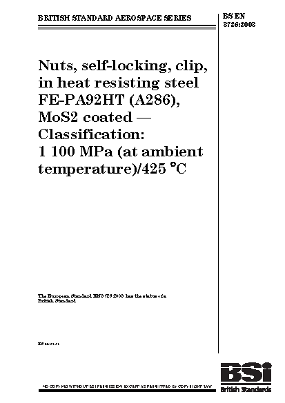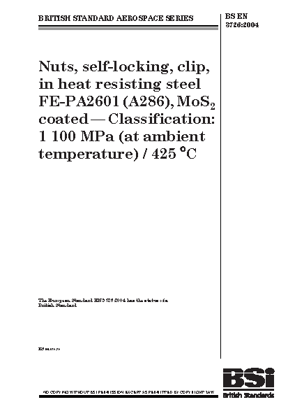 Aerospace series. Nuts, self-locking, clip, in heat resisting steel FE-PA92HT (A286), MoS2 coated. Classification: 1 100 MPa (at ambient temperature)/425°C
