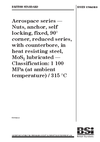 Aerospace series — Nut, anchor, self-locking, fixed, 90° corner, reduced series, with counterbore, in heat resisting steel, MoS2 lubricated — Classification: 1 100 MPa (at ambient temperature) / 315 °C