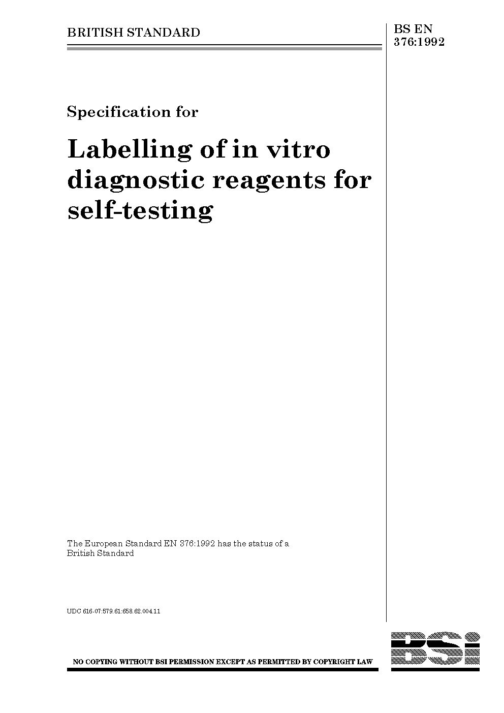Specification for labelling of in vitro diagnostic reagents for self-testing