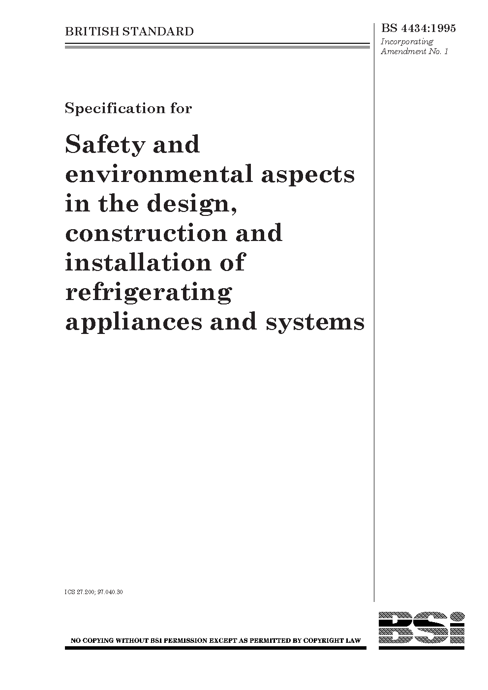 Specification for refrigerating systems and heat pumps. Safety environmental requirements Installation site personal protection